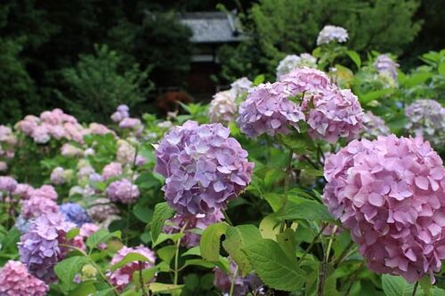 智積院さんの金堂横から裏に広がる紫陽花はまだ株は小さいものの色が豊富でかなりの本数があるので以外と見応えがあります。特に名所に指定されているわけではありませんが裏は紫陽花畑の様に広がっています。