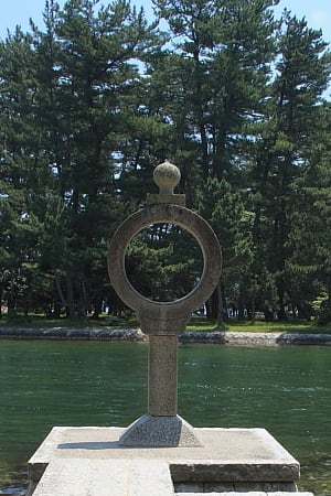 雪舟の絵にはこの多宝塔も分かりやすく描かれています。3回くぐると智恵を授かるという智恵の輪灯篭