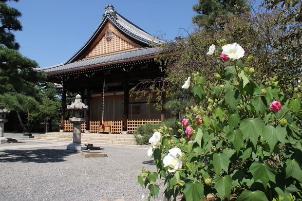 2013-09-27 京都・芙蓉咲く「妙蓮寺」 京都(花) 御会式桜で有名な西陣のお寺「妙蓮寺」さんは芙蓉の花でもよく知られています。境内は少し整備されましたが花はいままで通り綺麗に咲いています。 境内には彼岸花も多く見られます。芙蓉の花の後ろが御会式桜、改修工事を終えた本堂の真新しい扉
