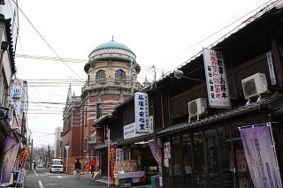 仏具店が並ぶ正面通りに突如として現れるレンガ造りの洋館?