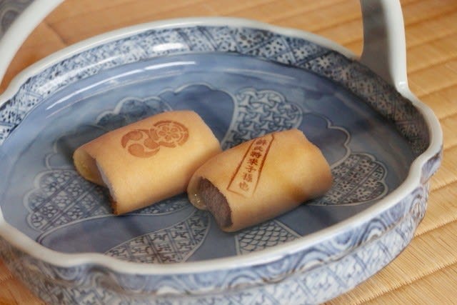 2021-07-21 京都・祇園「鍵善良房」祇園まもり 京都(和菓子・洋菓子) 享保年間創業、祇園の京菓子司鍵善さん祇園祭期間のみ特別販売されるお菓子「祇園まもり」疫病退散のお祭、祇園祭にあやかった思いが込められています。薄く焼いたカステラ生地で求肥を包んだ調布製白と黒糖の2種類がありますがちょうど白が売切れていたので黒の方だけ買って来ました。黒糖味というのも珍しくふっくらした生地に柔らかい求肥が美味しかったです。祇園祭の花「ヒオウギ」